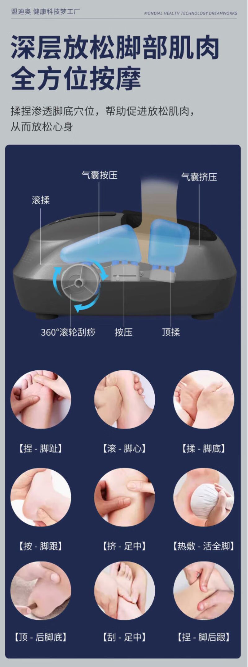 空氣壓縮腳底按摩器腳底按摩機(腳趾),刮擦(鞋底),Shiatus(腳跟)按摩(多模式,多強度)