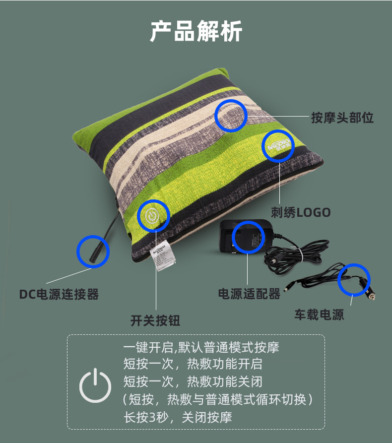 2.4個(gè)按摩頭、熱療功能、揉捏功能、雙向旋轉(zhuǎn)